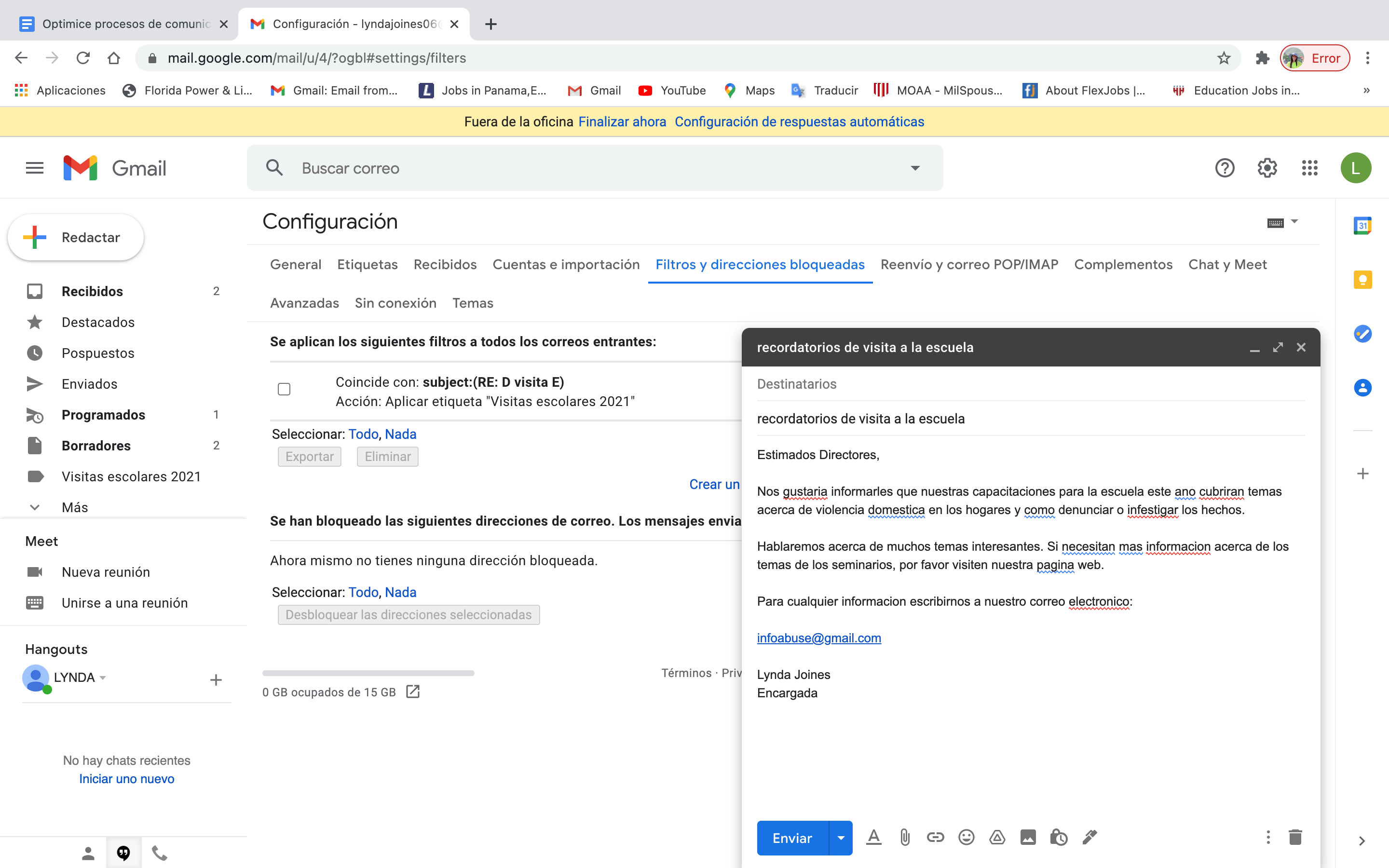 Cree los filtros de correos electrónicos en su correo de Gmail